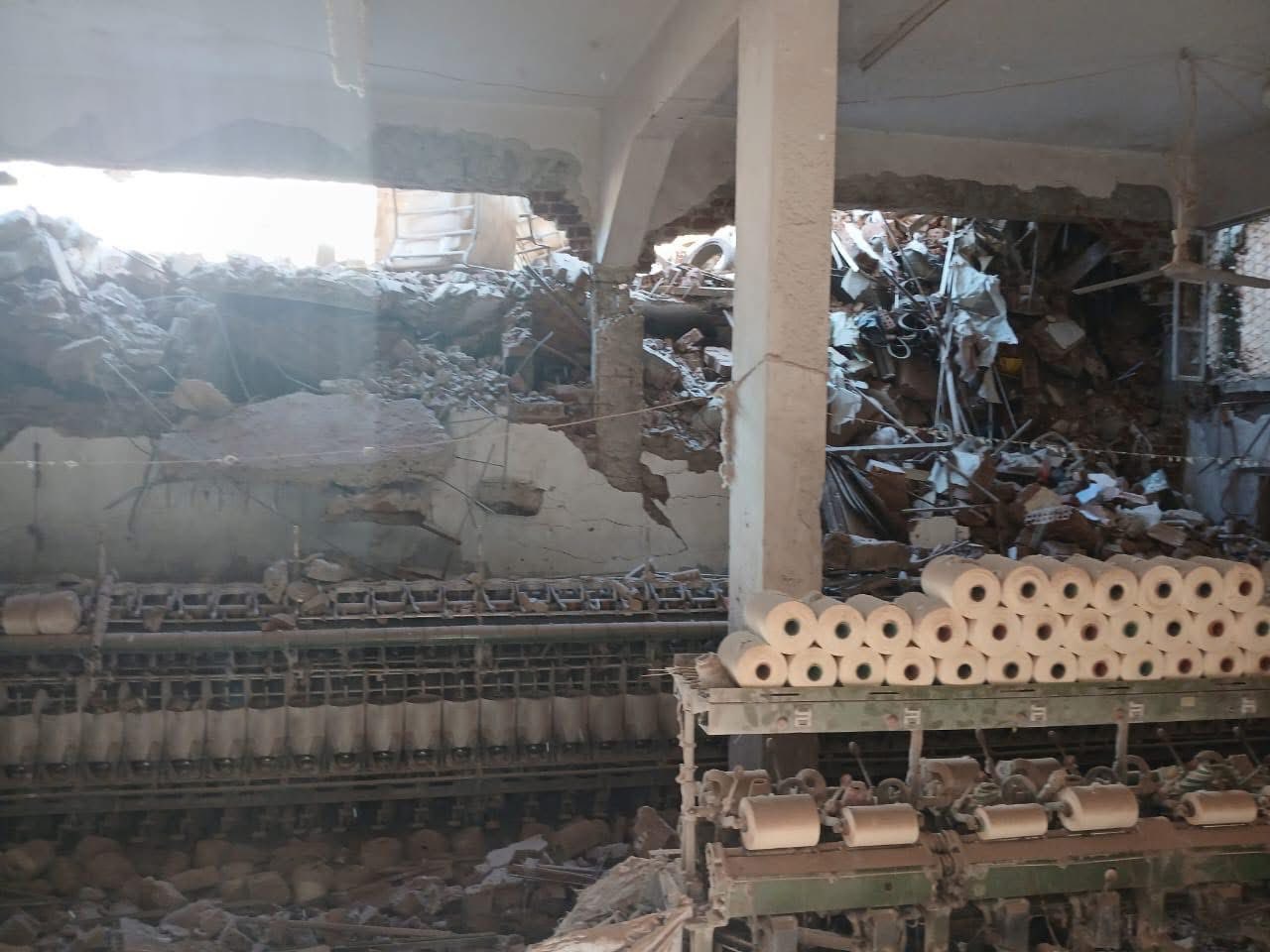 إنقاذ أحد رجال الحماية المدنية من أسفل الانقاض في انهيار مصنع...